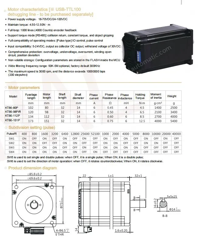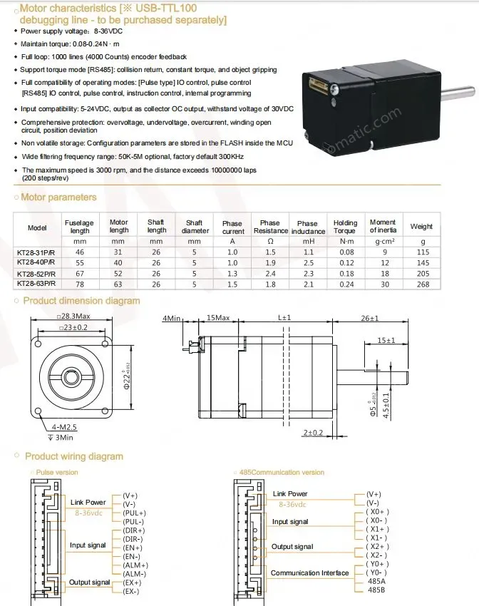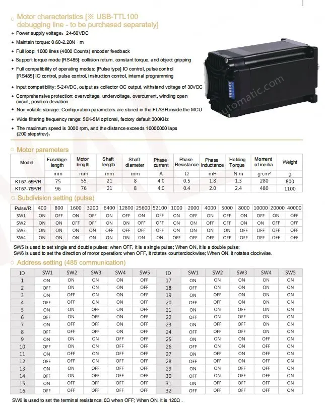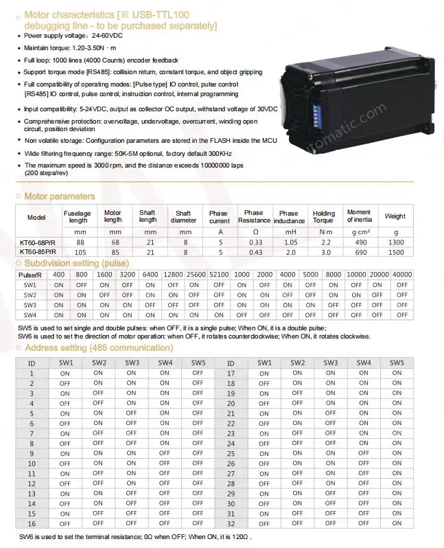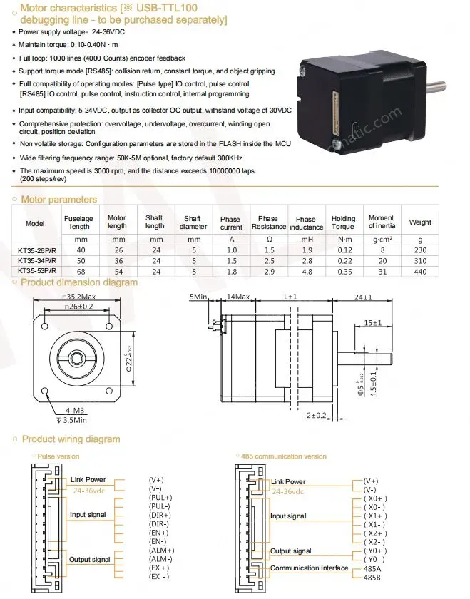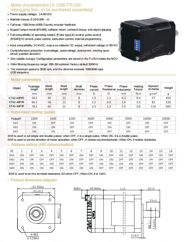 Motor characteristics [※ USB-TTL100 debugging line - to be purchased separately]