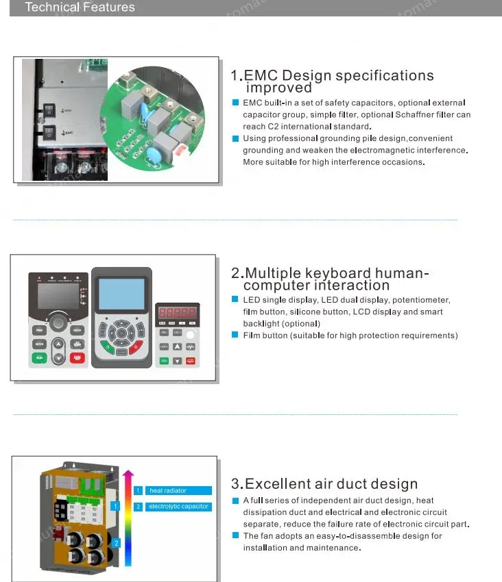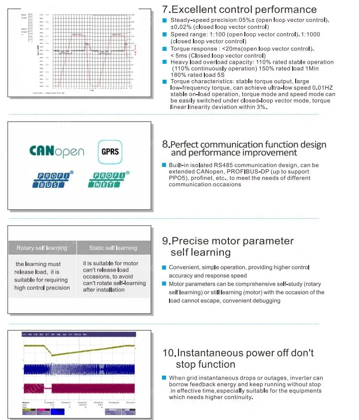 The communication function is moreperfect and the performance is greatly improved.Products are widely used in metallurgy,petroleum,chemical,steel,textile,electricity,building materials,coal,water supply,photovoltaic,cable,and other industries of various automation equipment drive and control.