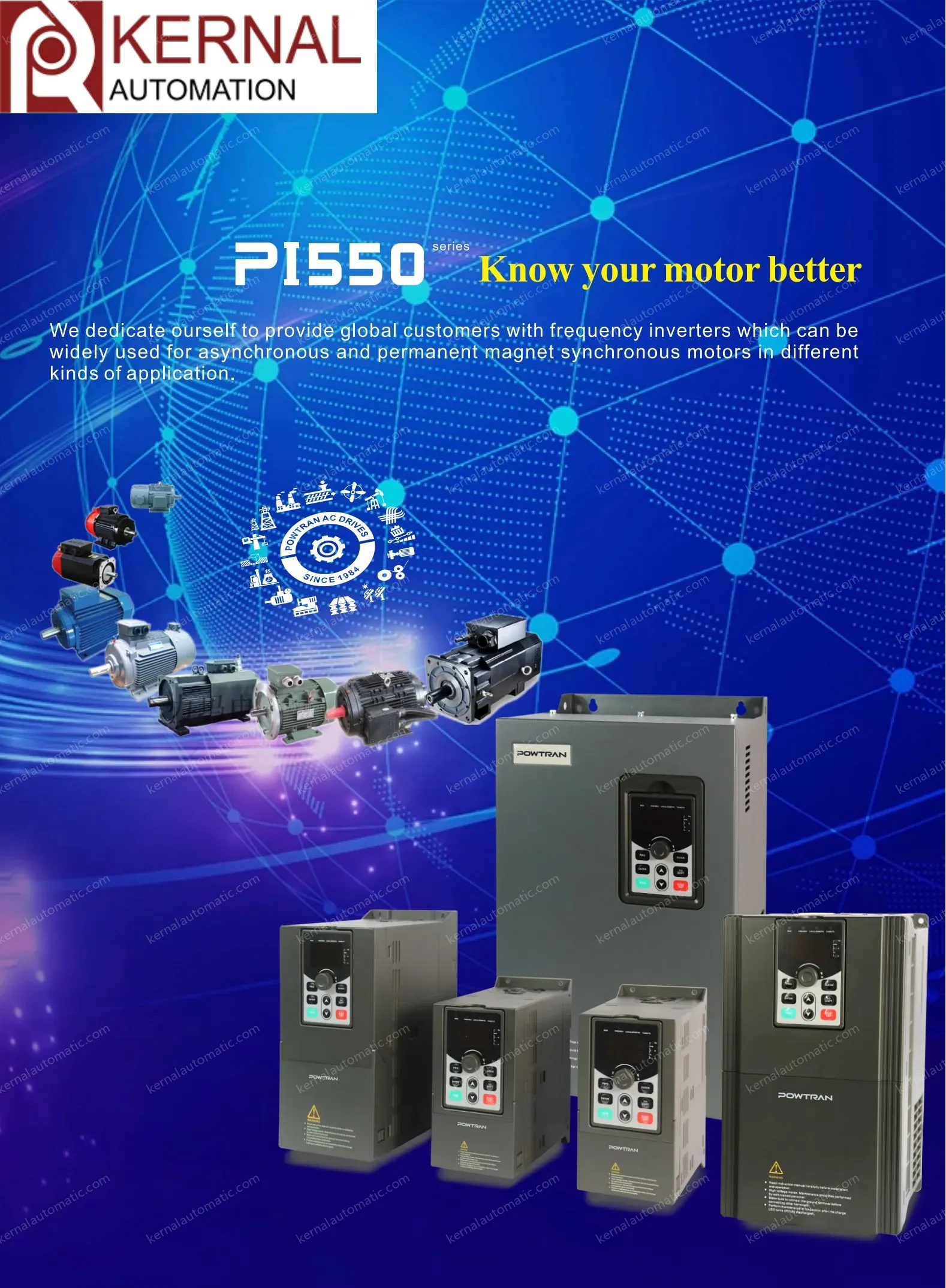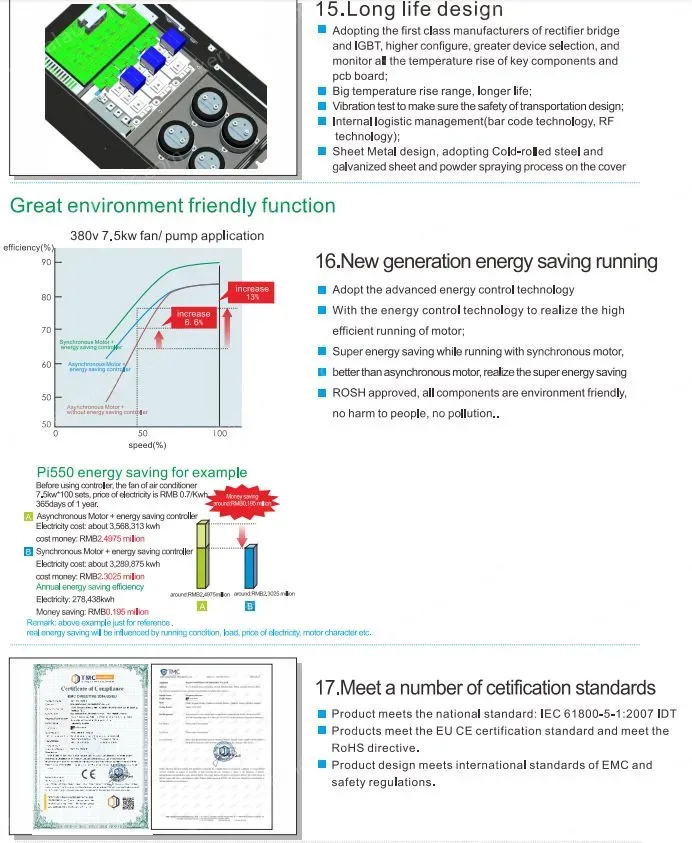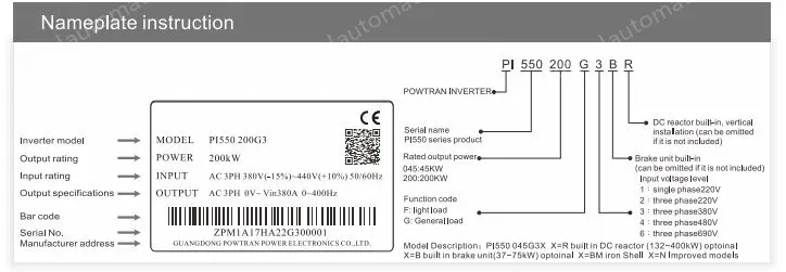 PI550 series inverterisa high-performance current vector inverter developed by Powtran technology basedon PI500 series.The product adopts DSP as the corecontrol unit,unique vector control algorithm,and true current vector control that Strengthen product operation reliability,environmenta adaptability,ease of use and maintainability.